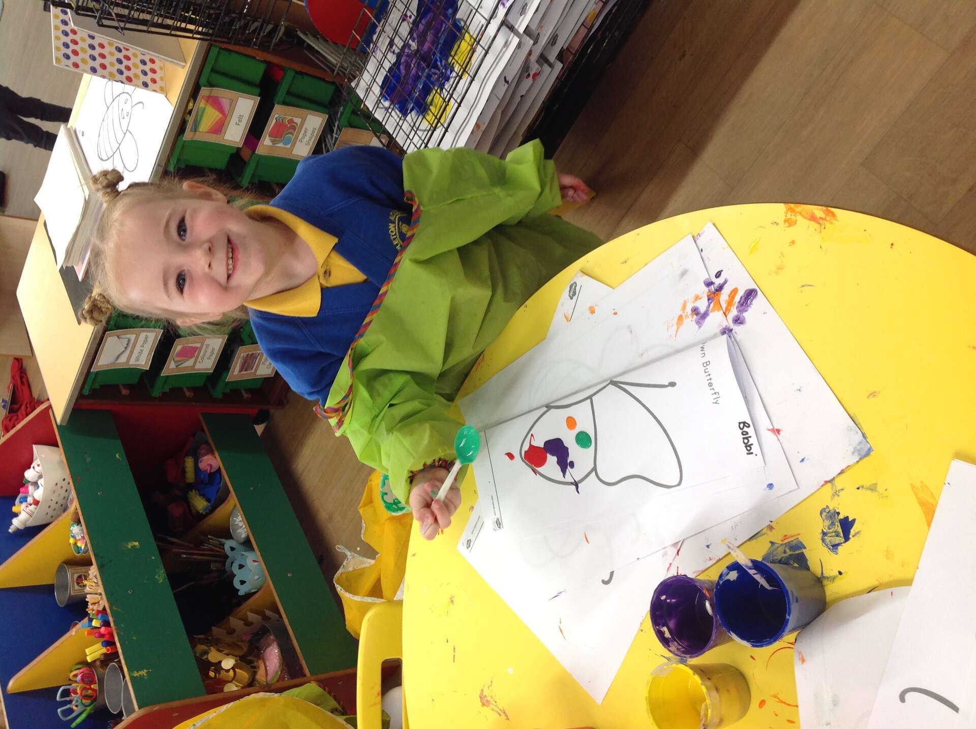 We have been doing lots of activities about butterflies and caterpillars this week. We read the story the Very Hungry Caterpillar, which is one of Miss Imrie's favourites.