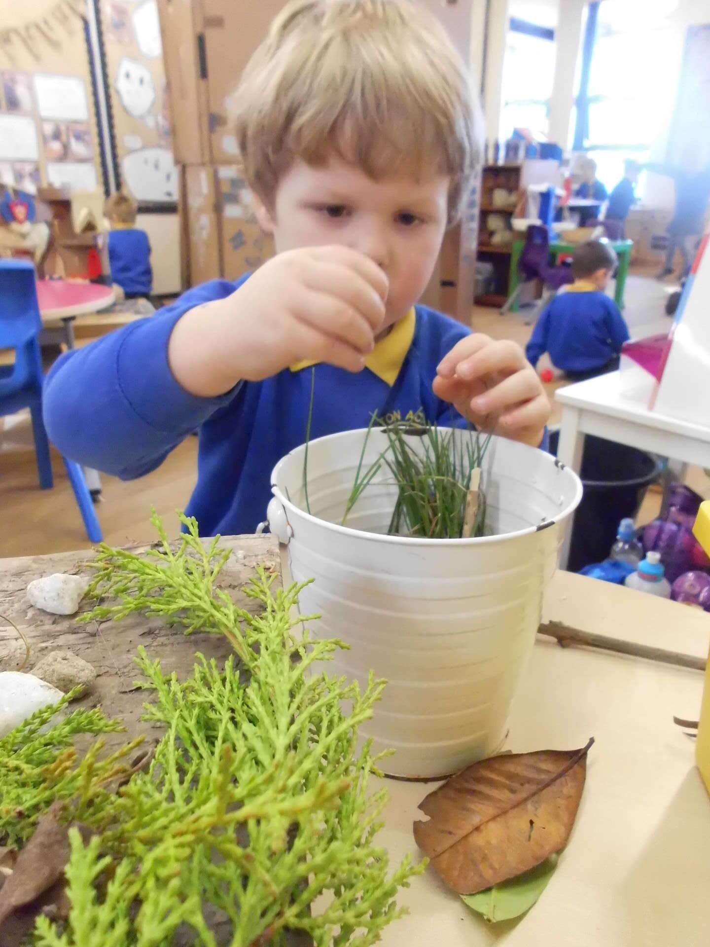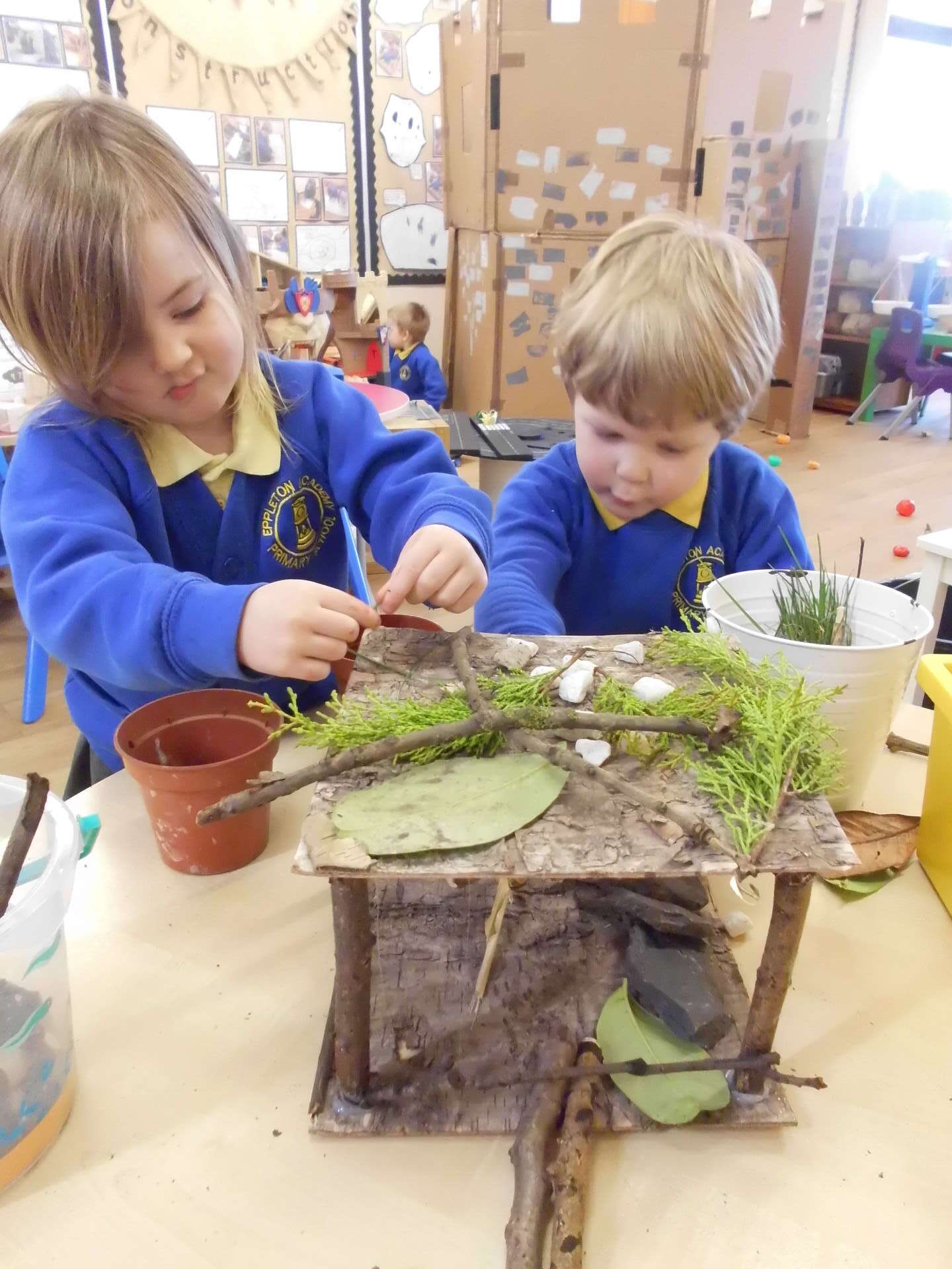 On Monday, we were amazed to find a teeny tiny note from some magic fairies. They asked us for our help to find a new place to live. Their house had been blown away by the wind and they needed a new home. We were really excited about helping the Flower Fairies and had lots of ideas about what their new home should be like. We made excellent designs to help us plan what we needed to be able to build the fairy houses. We then went out into the garden to find suitable materials for the fairy houses. We found lots of great bits and pieces such as sticks, bark, leaves etc. We then worked together in groups to build some fairy houses. We had lots of fun and think they look amazing. We can't wait to put them out in the Secret garden for the Flower Fairies to live in.