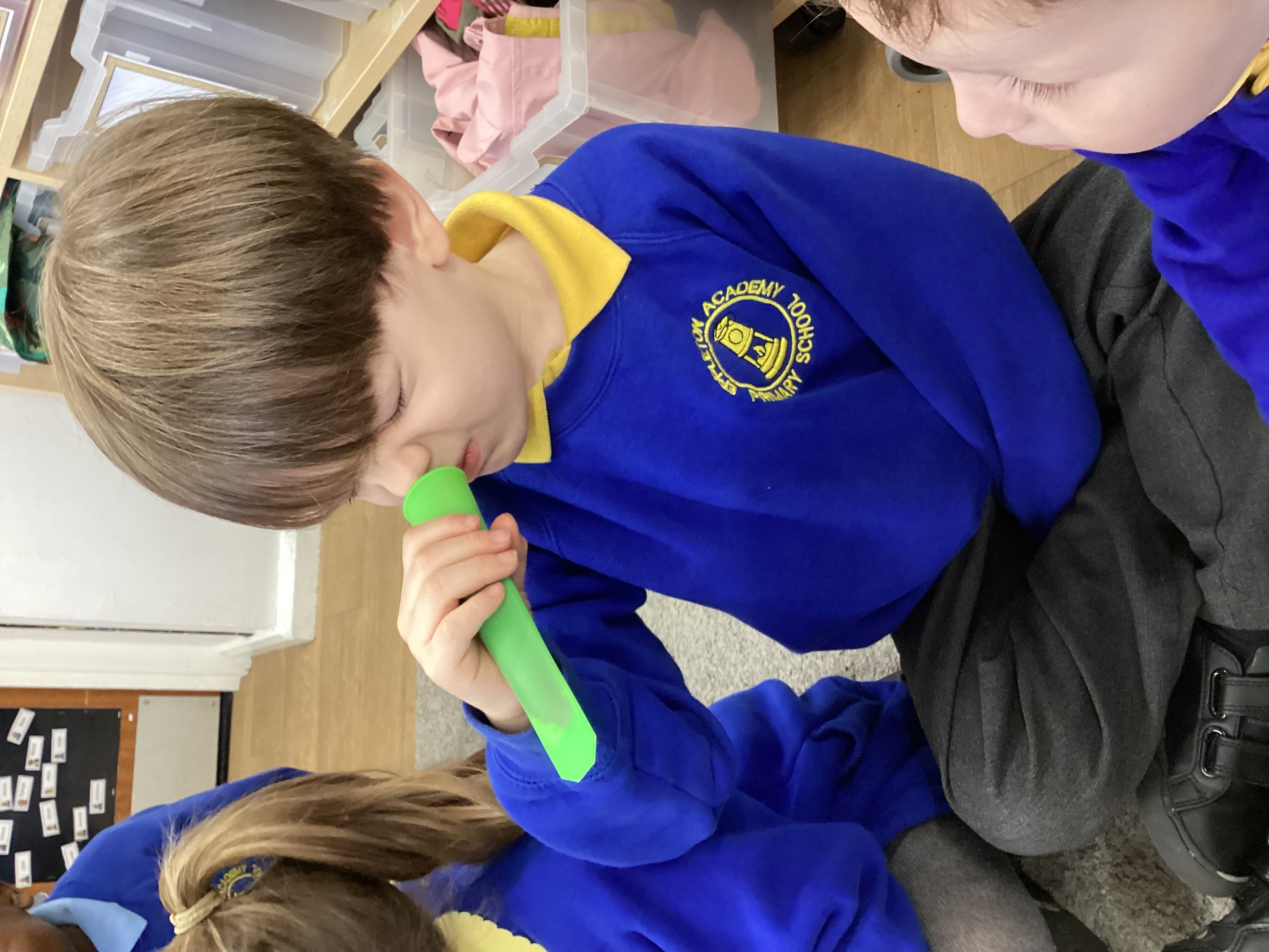 On Wednesday, we explored our sense of taste. We tasted lots of different foods and decided which ones we liked and didn’t like. We used words to describe the taste such as sweet, juicy, sour. We liked the taste of the chocolate best.