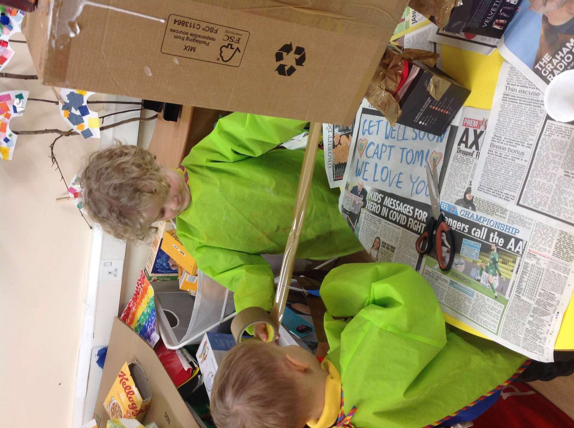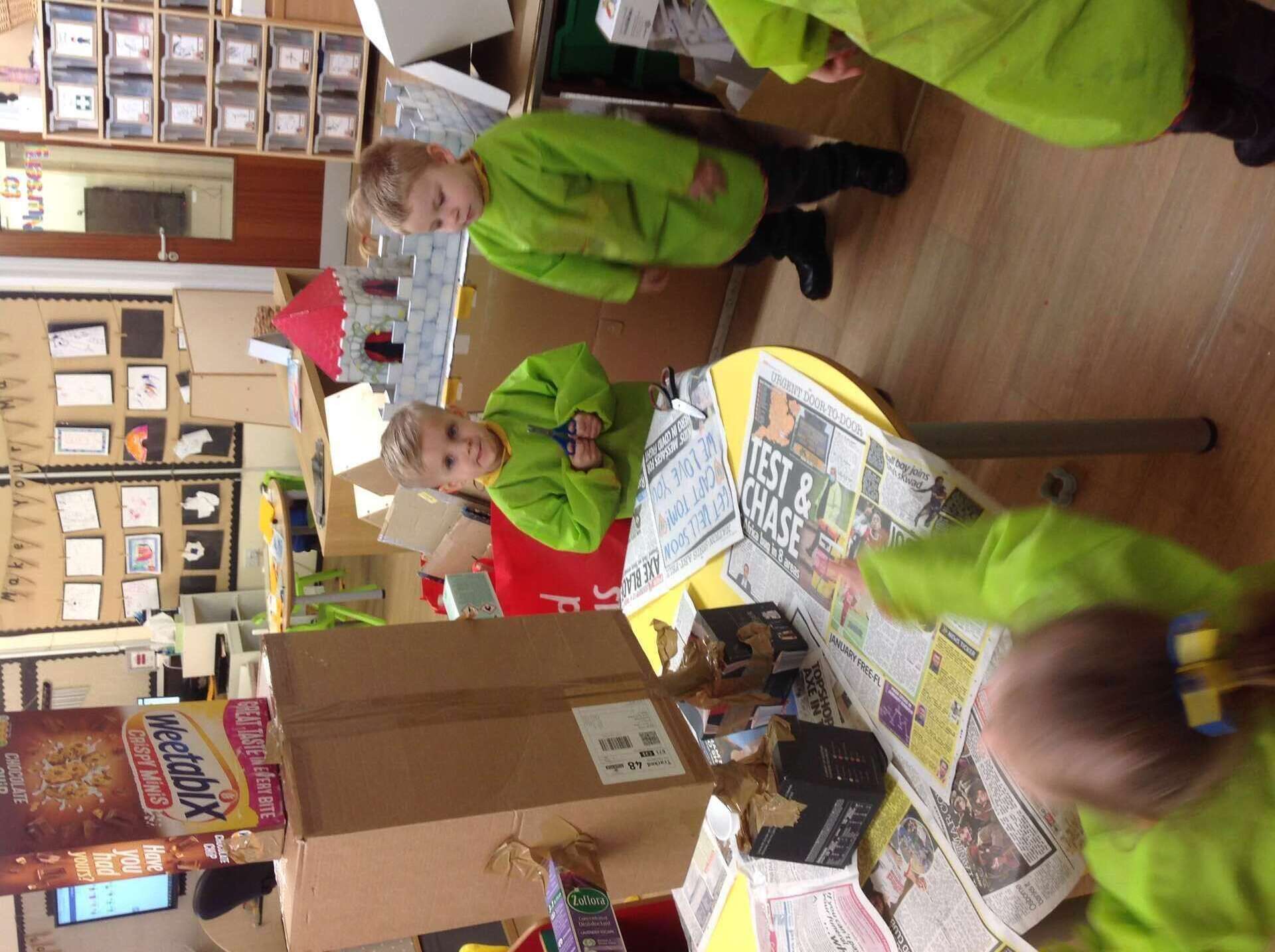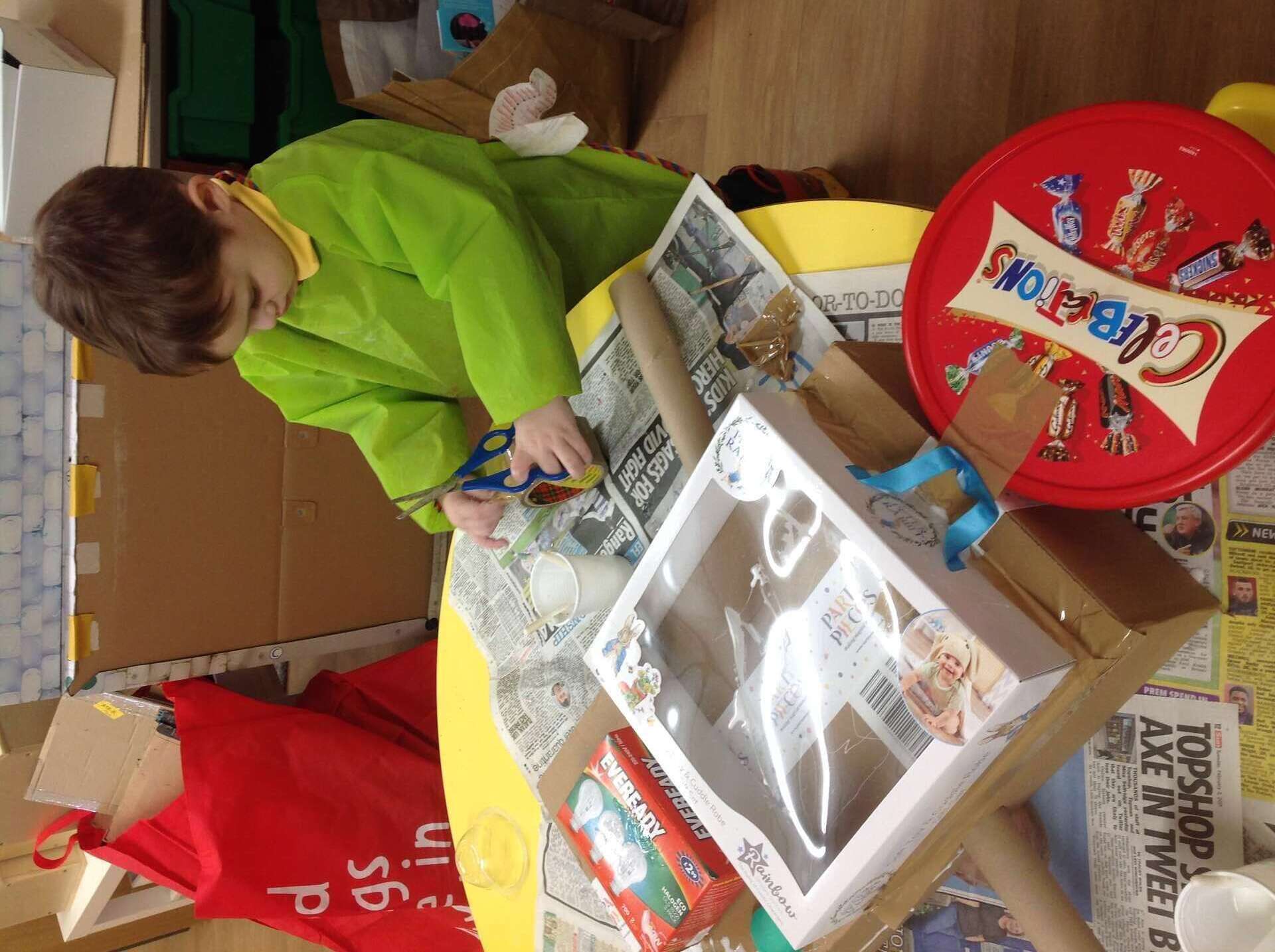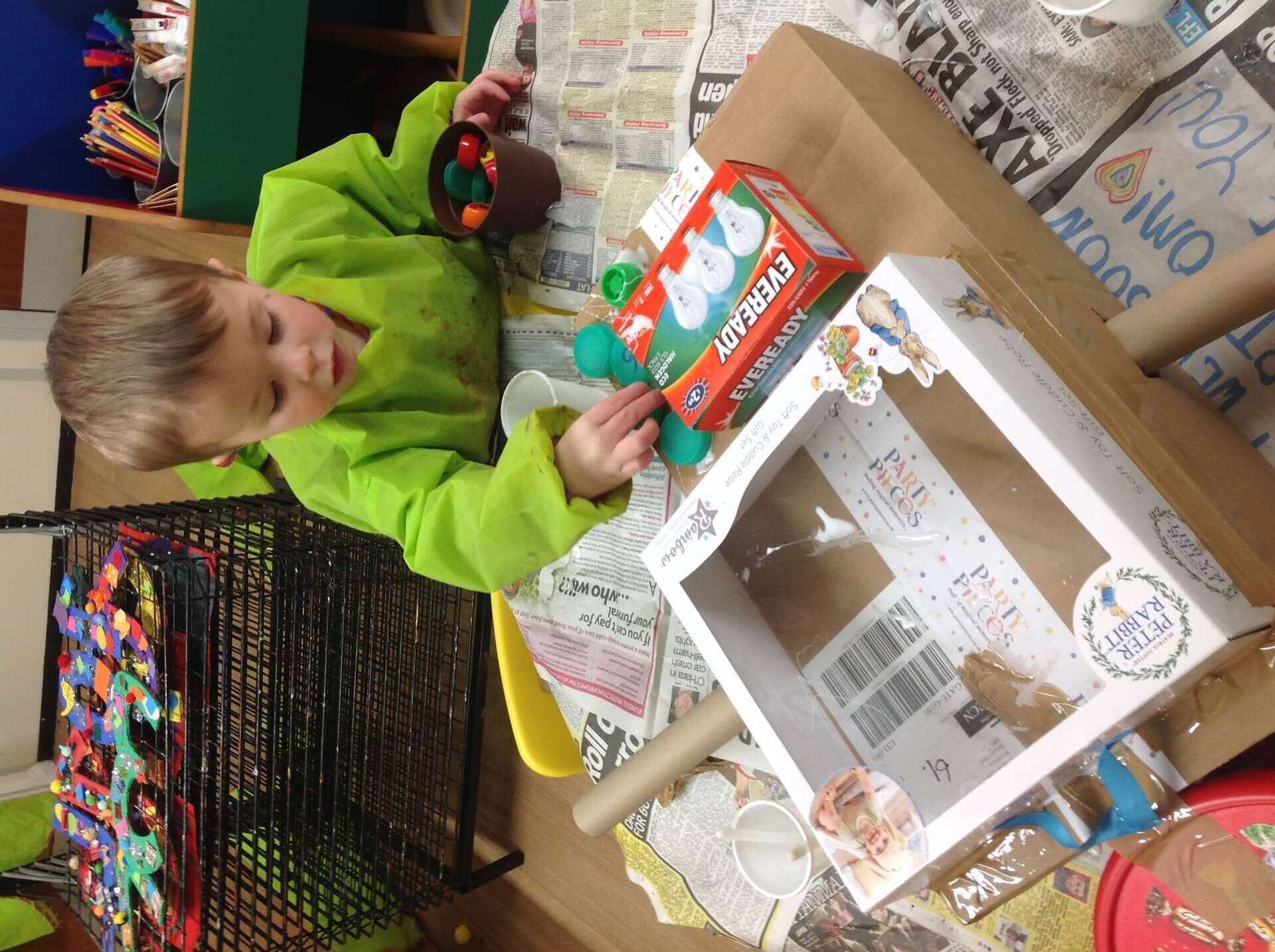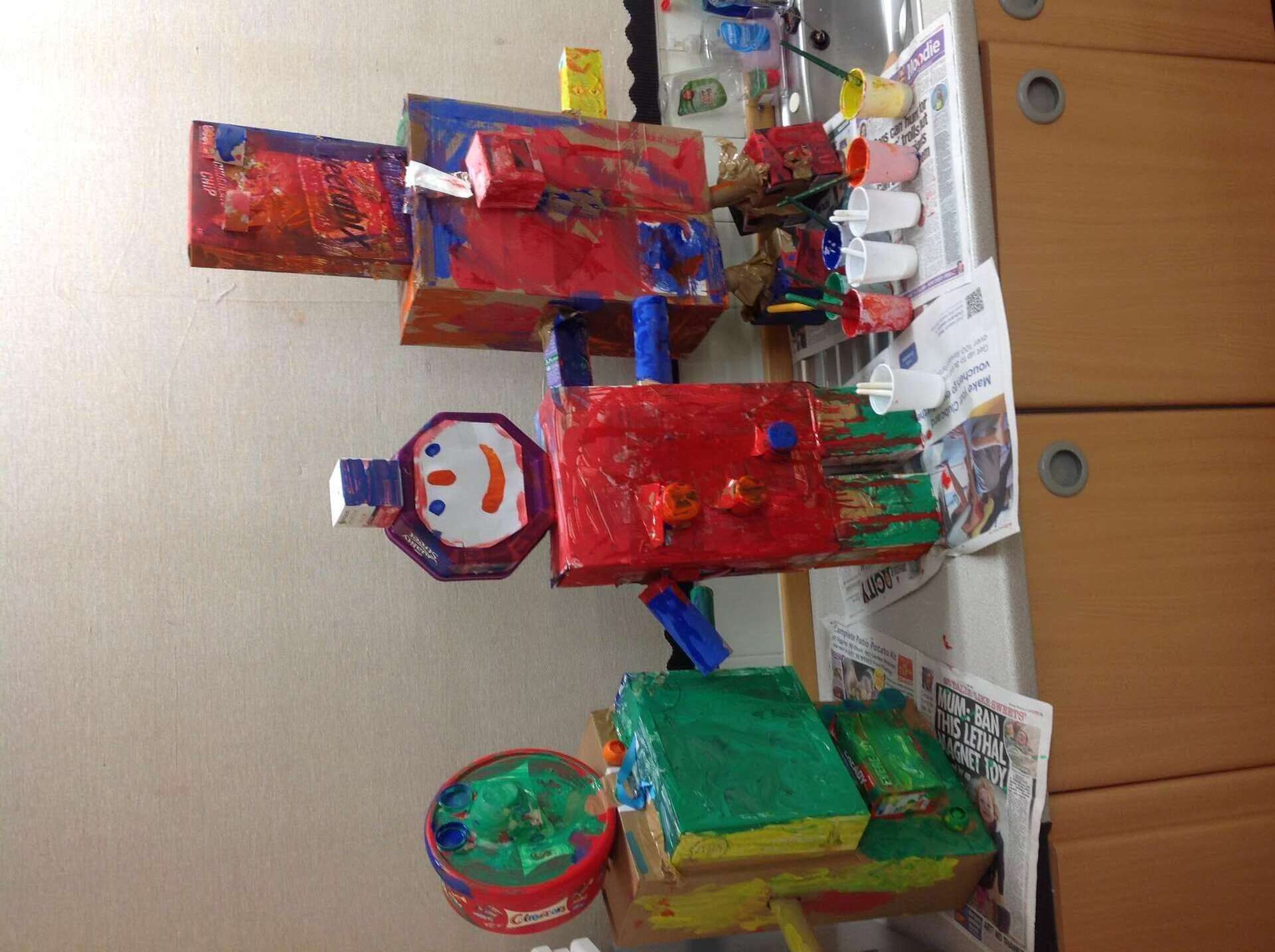 This week we read the story Harry and the Robots as part of our Toys and Bears topic. The children loved the story and were really keen to make their own robots. We used lots of different junk modelling and craft materials to make the robots. We discussed sticking and joining techniques to attach the arms and legs to the body. The children found great resources for the buttons. It was a very messy job but we had lots of fun being creative. Meet Kevin, Bobby and Beepy our new class robots.