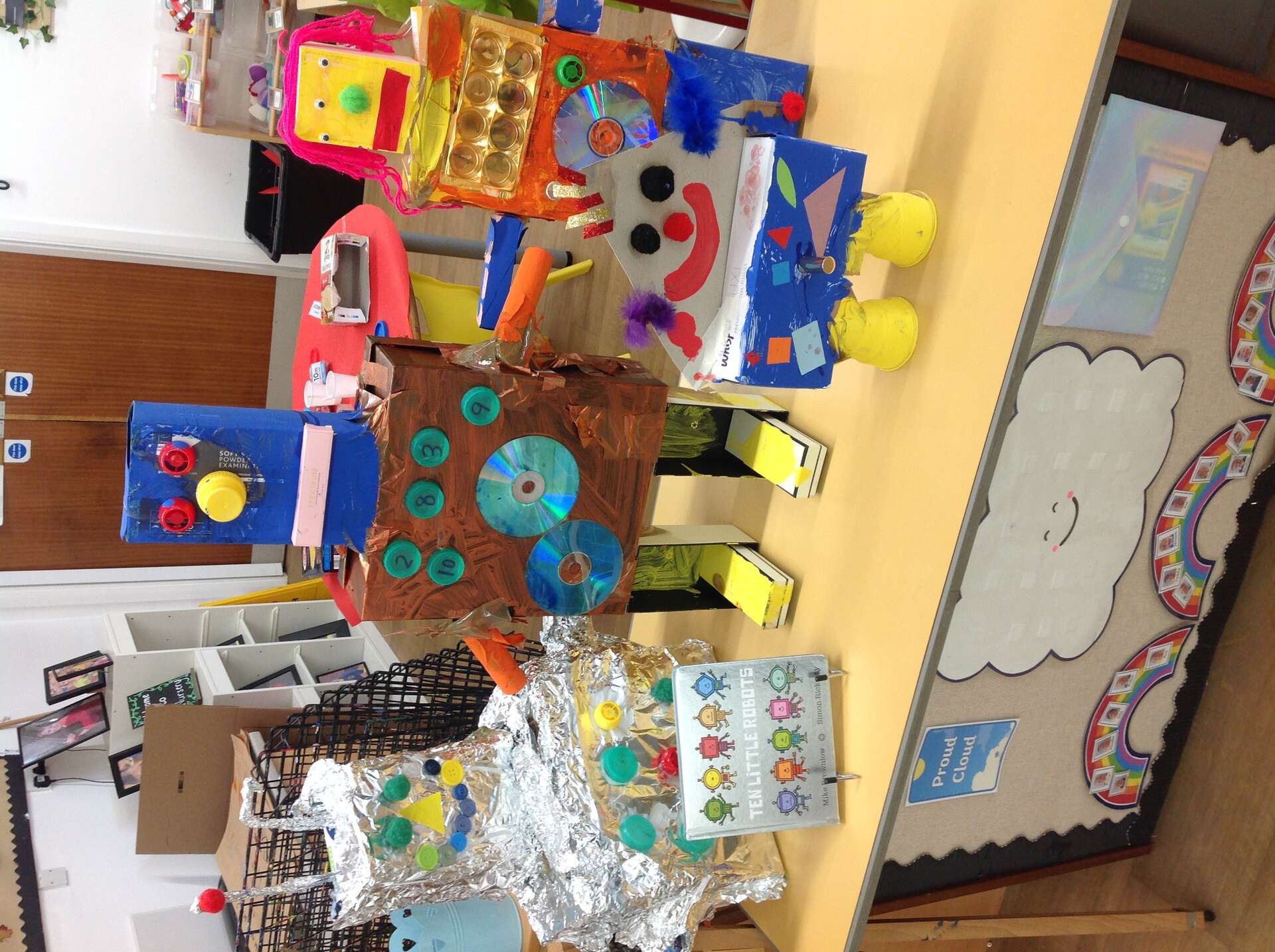 This week we read the story ‘Harry and the Robots’ in the story Harry made his own robots using junk modelling materials so we did the same. The children worked really hard to design and make their own robots. They had to think carefully about which materials to use and how to join materials together. We had so much fun working together to make some fantastic robots.