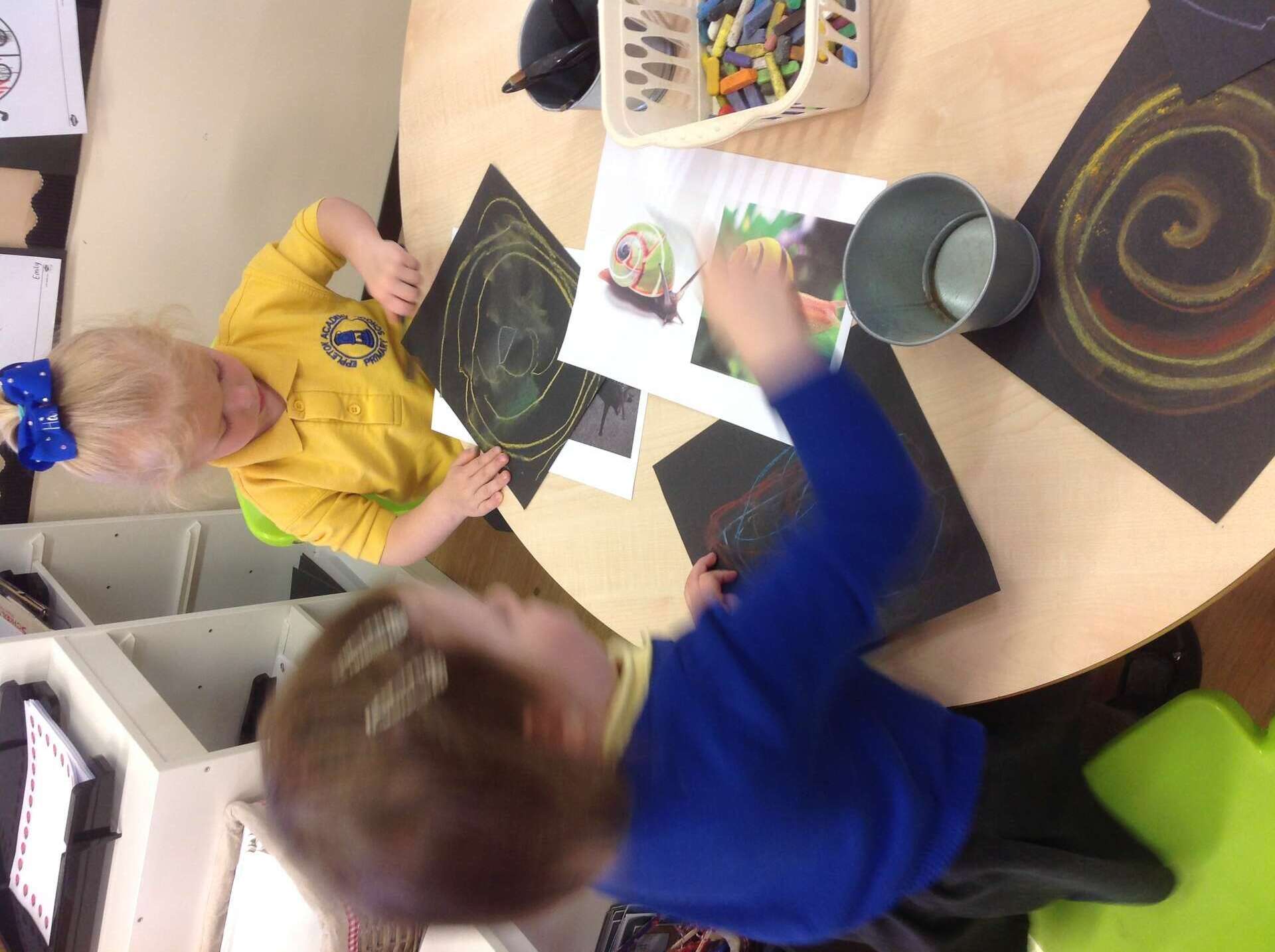 This week we have been learning all about snails and slugs. We have read stories such as the Snail and the Whale, Norman the Slug and Mr Snail the Postman. We have made lovely spiral snails using different media such as chalk, playdough, natural materials and even pastry. We loved going on a snail hunt in the secret garden. We actually found a snail and named it Jonny. What a great week we have had.