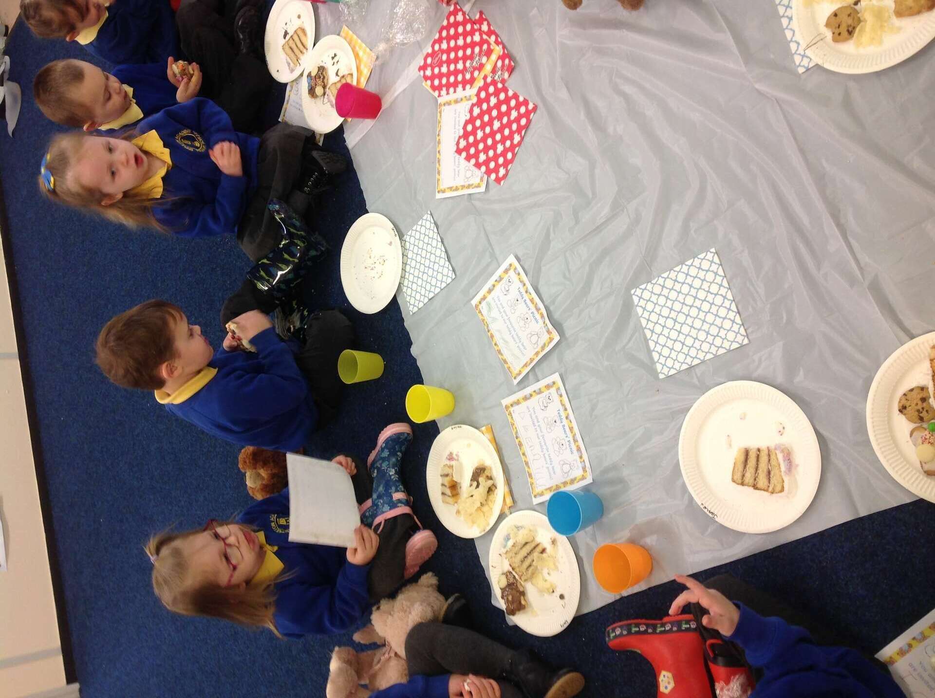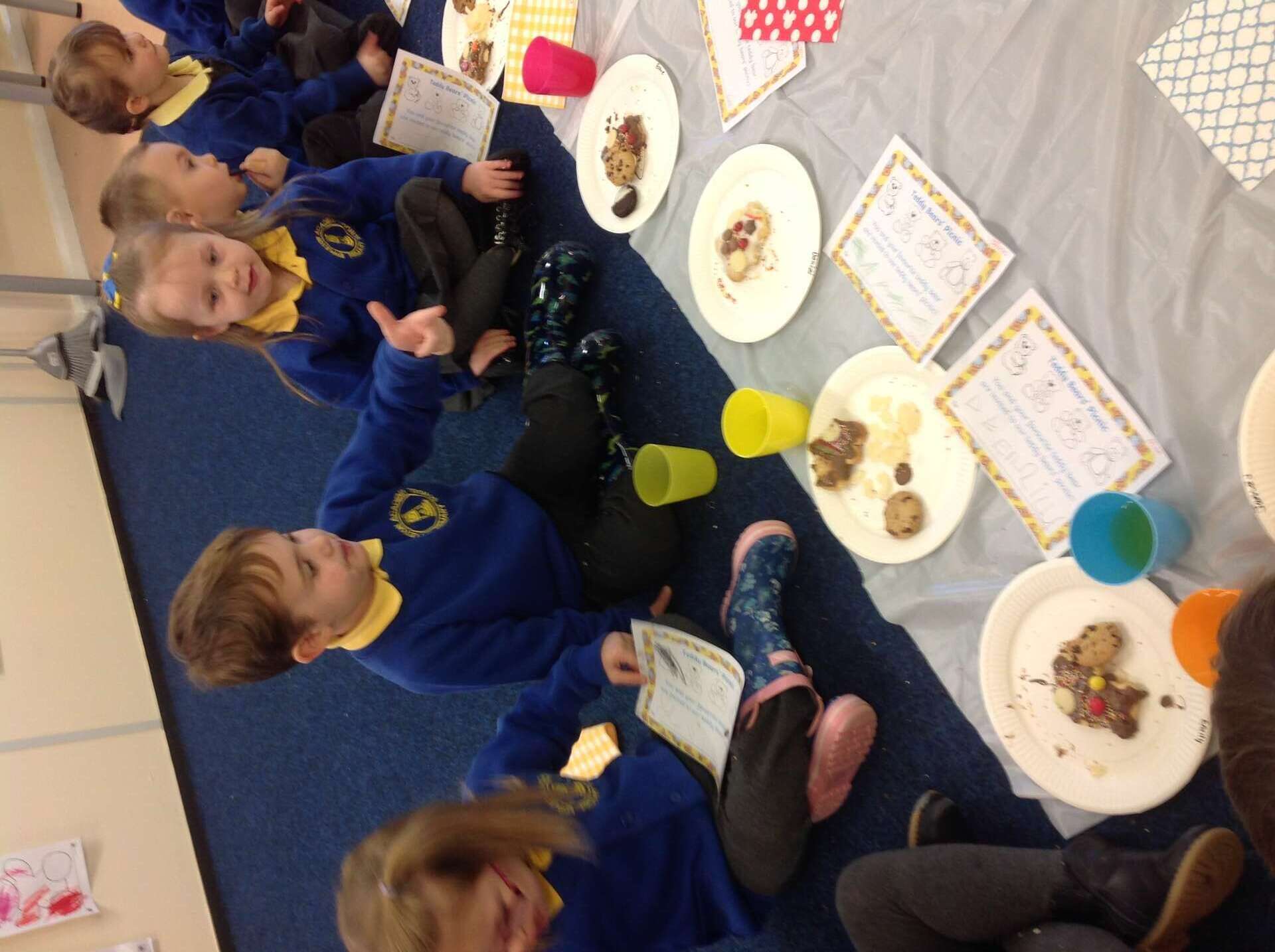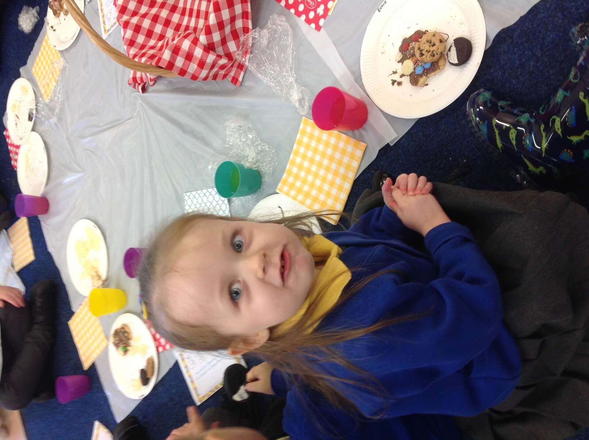 The celebrate all of the wonderful work we have done during our topic ‘Toys and Bears,’ we had a lovely teddy bears’ picnic. The children helped prepare for the picnic by making decorations, writing invitations and decorating their own teddy bear biscuits. Just as we were about to begin our teddy bears’ picnic we found that all of the teddy bears had disappeared so we had to go on a bear hunt to find them all. We enjoyed sitting together to share snacks. Our teddy bear biscuits were delicious.
