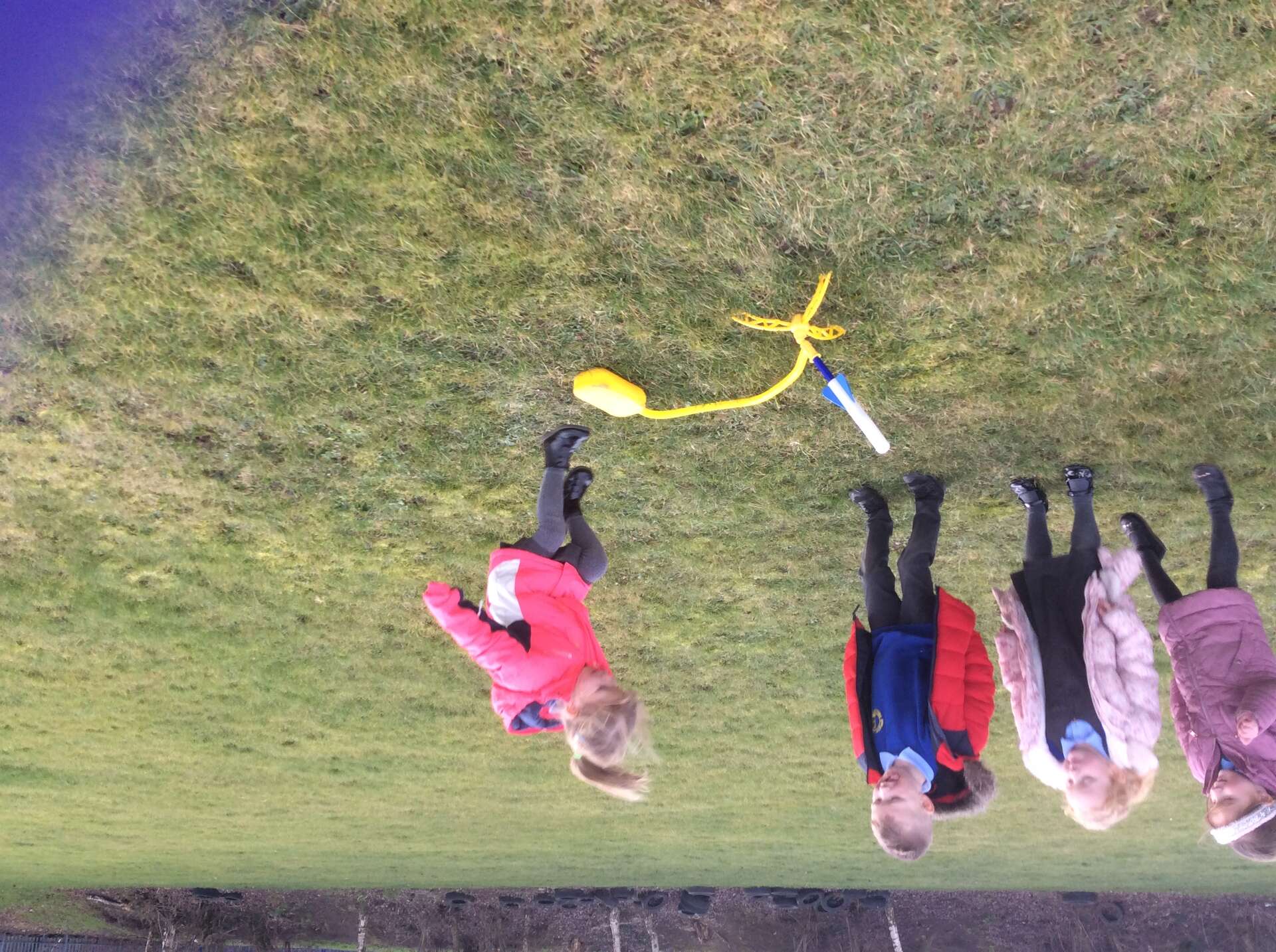 We explored launching a rocket into space. To do this we had to step on the launch pad to push the rocket up but soon realised that the harder we pushed the further the rocket went so the only thing to do was to take a run and jump. We then measured whose rocket had travelled the furthest.
