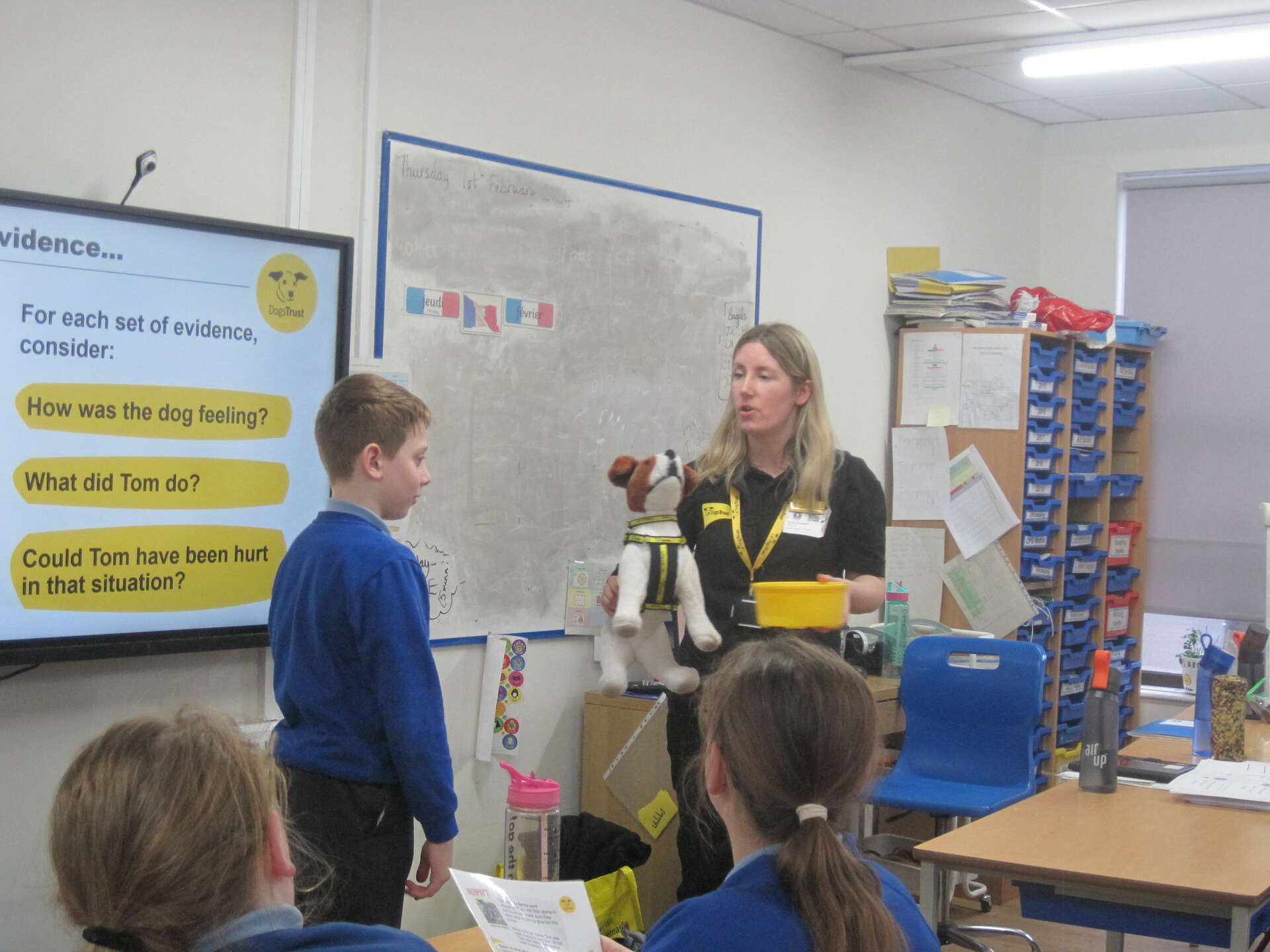 Key Stage 2 took part in some excellent workshops with Suzie, from Dogs Trust. Suzie visited the classes to share information about dogs and how to interact safely with them. The children became detectives and investigated what happened to Tom, an eight-year-old boy, who as bitten by a dog. The children looked at all of the dogs and their breeds. Quickly, the children made initial predictions about which dog it could have been. Suzie gave the children a pack of evidence with scenarios, which Tom was in with the different dogs. It was really interesting to work with Suzie, learning about about how to stay safe around dogs.