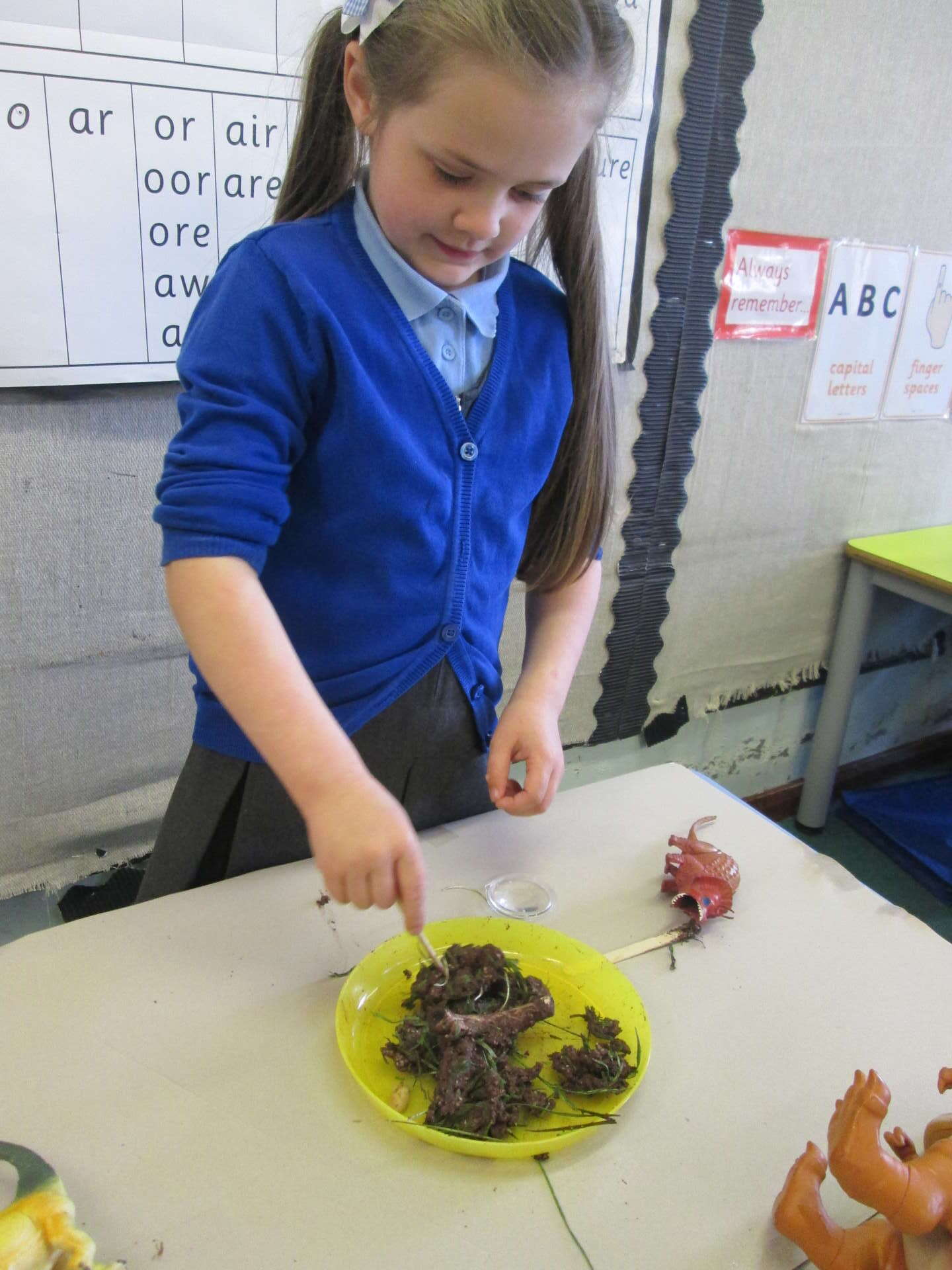 Year 1 investigated dinosaur poo as part of our science work on carnivores, herbivores and omnivores. Following in the footsteps of paleontologist and fossil collector, Mary Anning who lived over 200 years ago, we made our own coprolite (fossilised dinosaur poo) and looked for clues to tell us what the dinosaur ate. We discovered bones, grass, leaves, berries and nuts in the poo, and were able to match the poo to different dinosaurs!