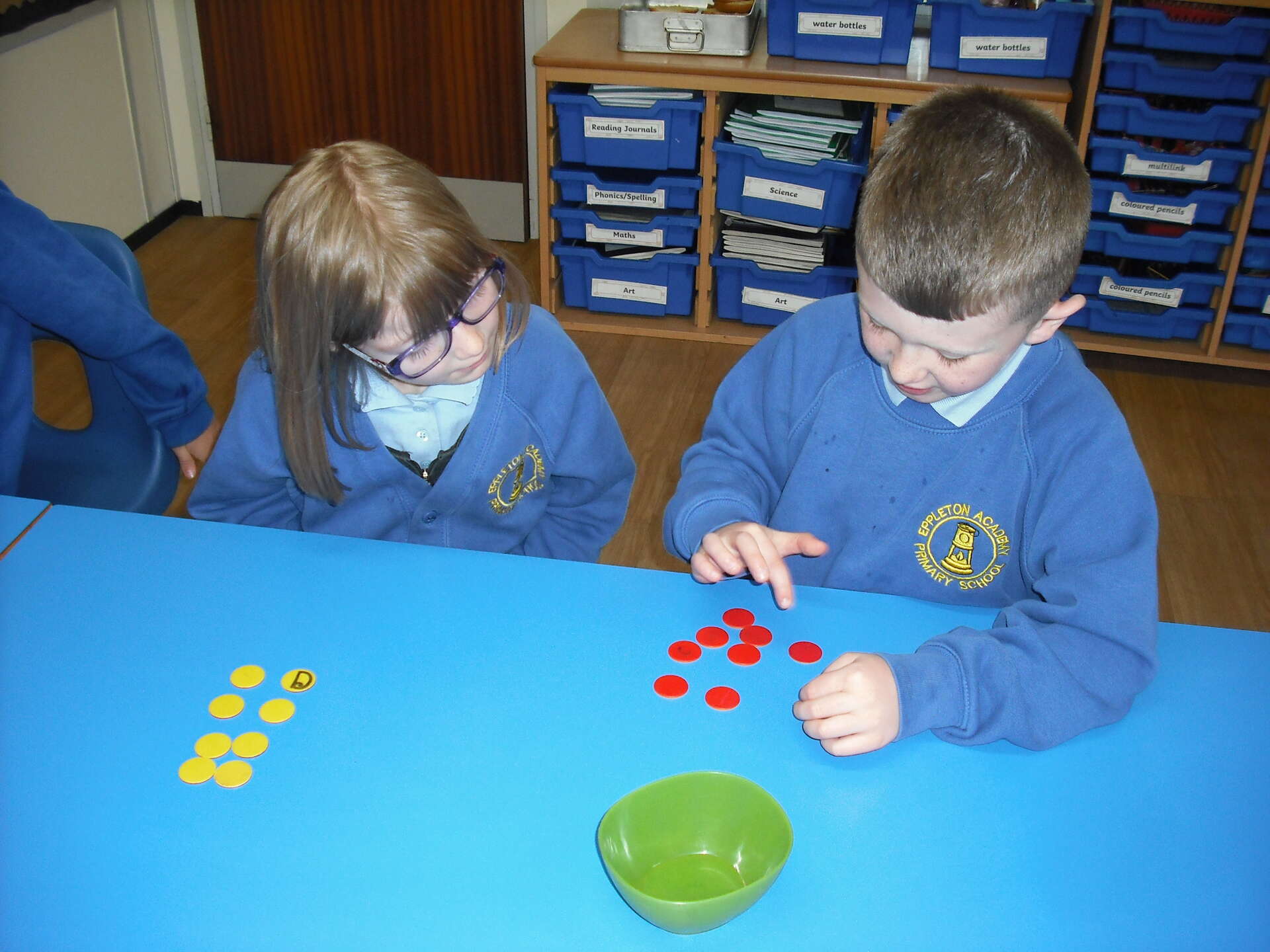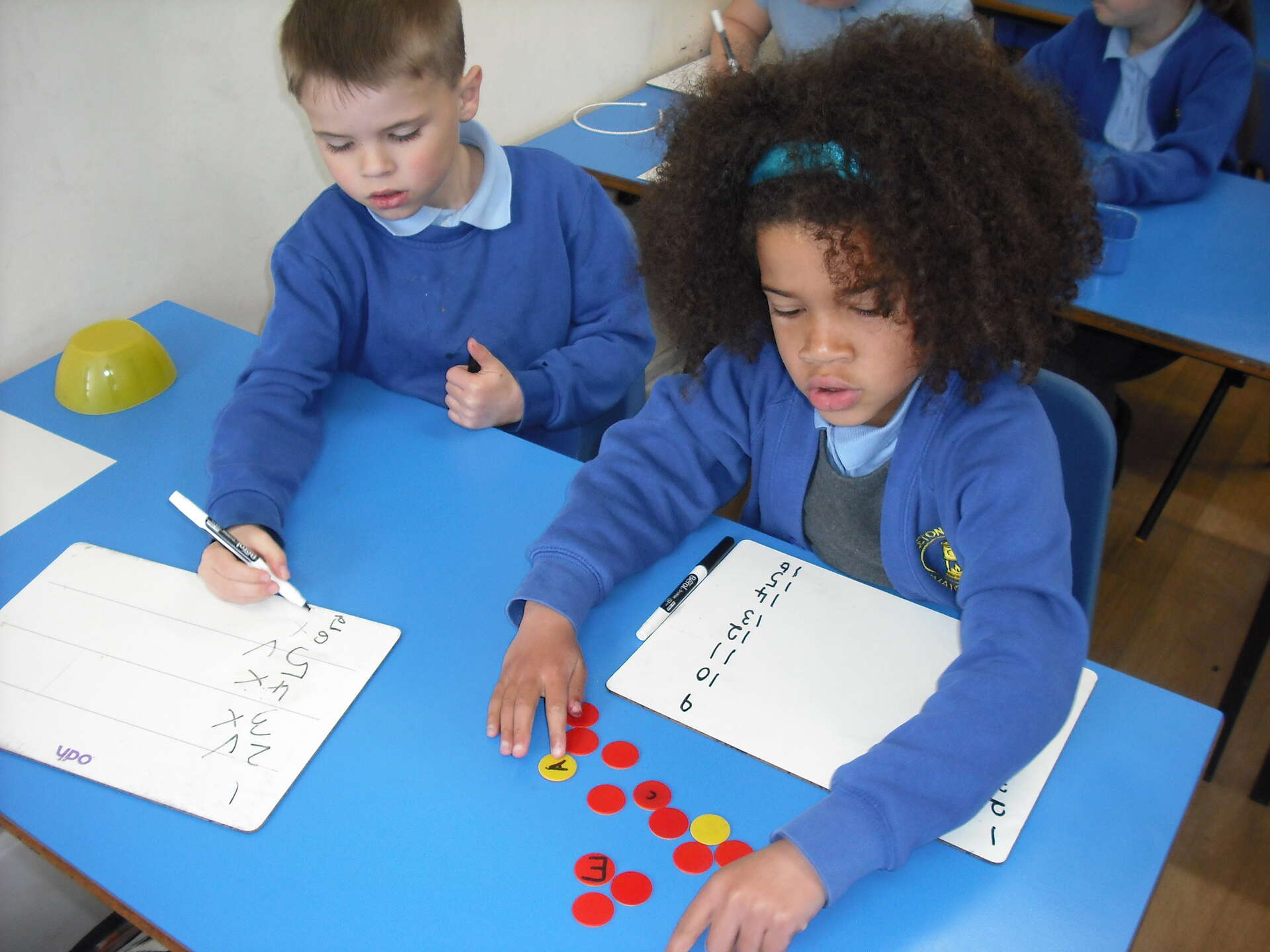 Year Two have been learning to share two digit numbers between equal groups as part of their work on fractions. They realised that the more equal groups they had, the fewer counters in each group. Some children also realised that 16 ÷4 = 4, 4x4 = 16 and 4 + 4 + 4 + 4 = 16! It has helped the children work out lots of other facts.