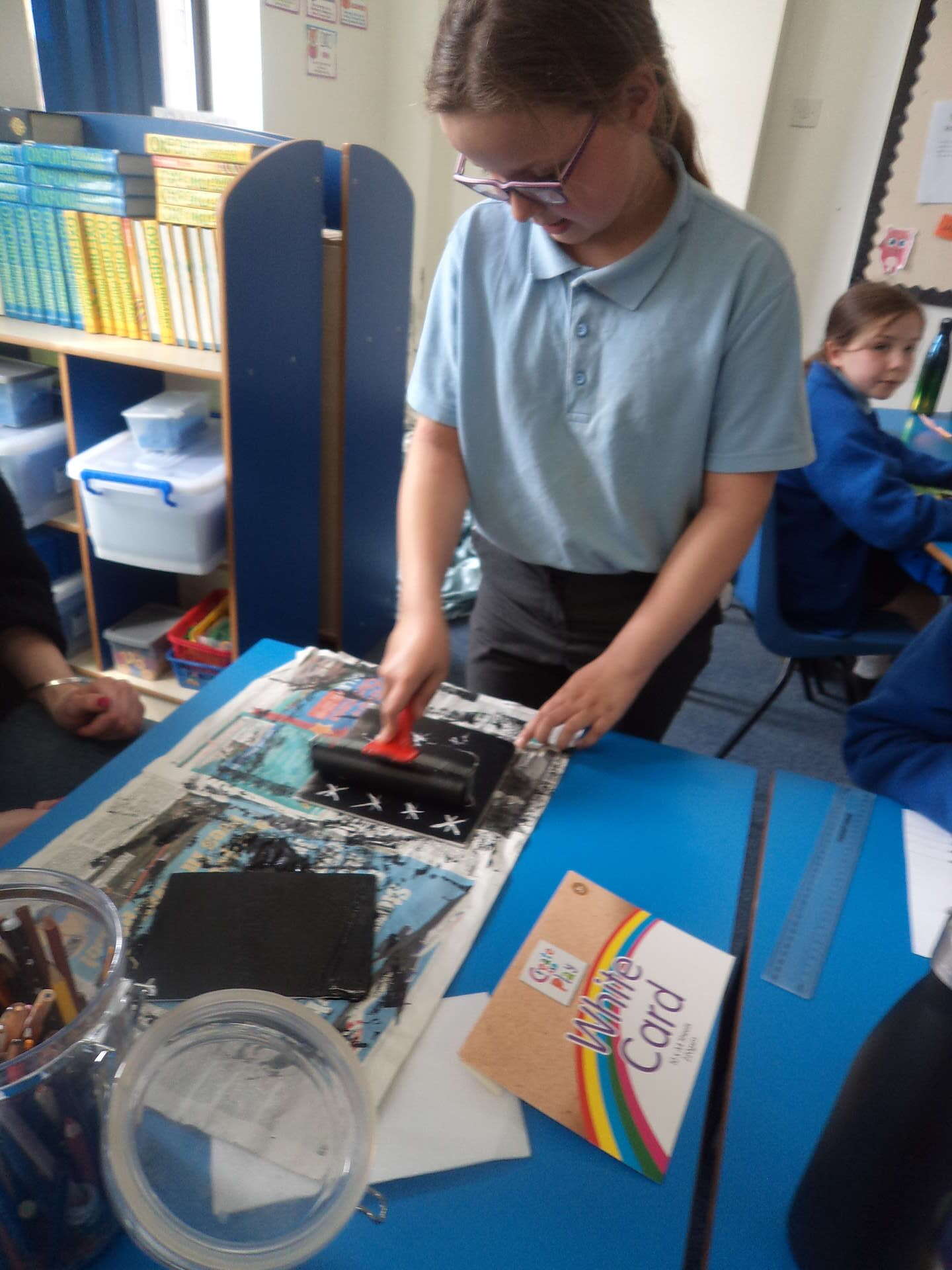 This week, we have been thinking about games we play and that the elderly people might have played in the past or even now. We drew these on to polystyrene and rolled some paint on to them. We then printed these onto card. You can see some of these in the photos.
