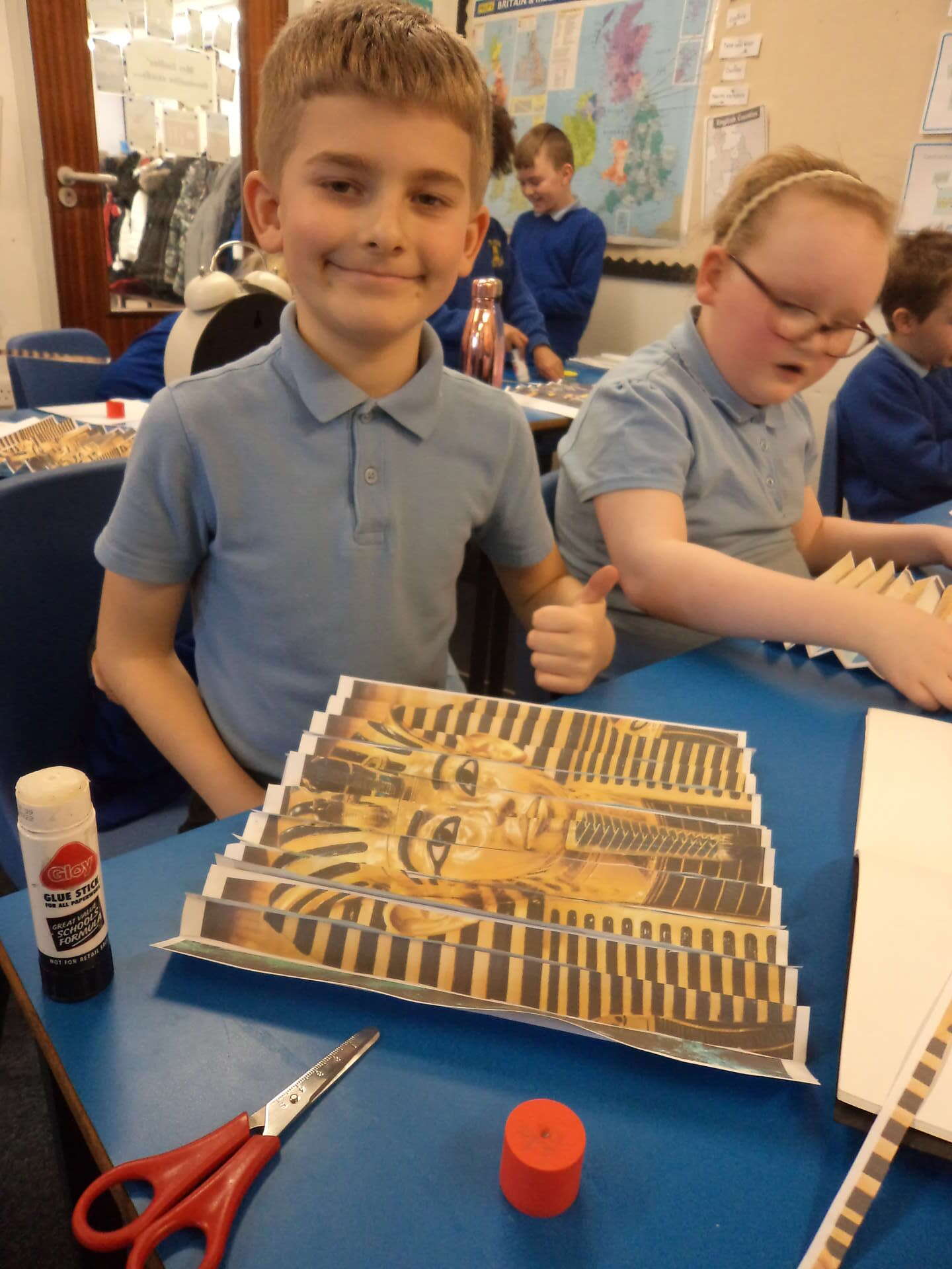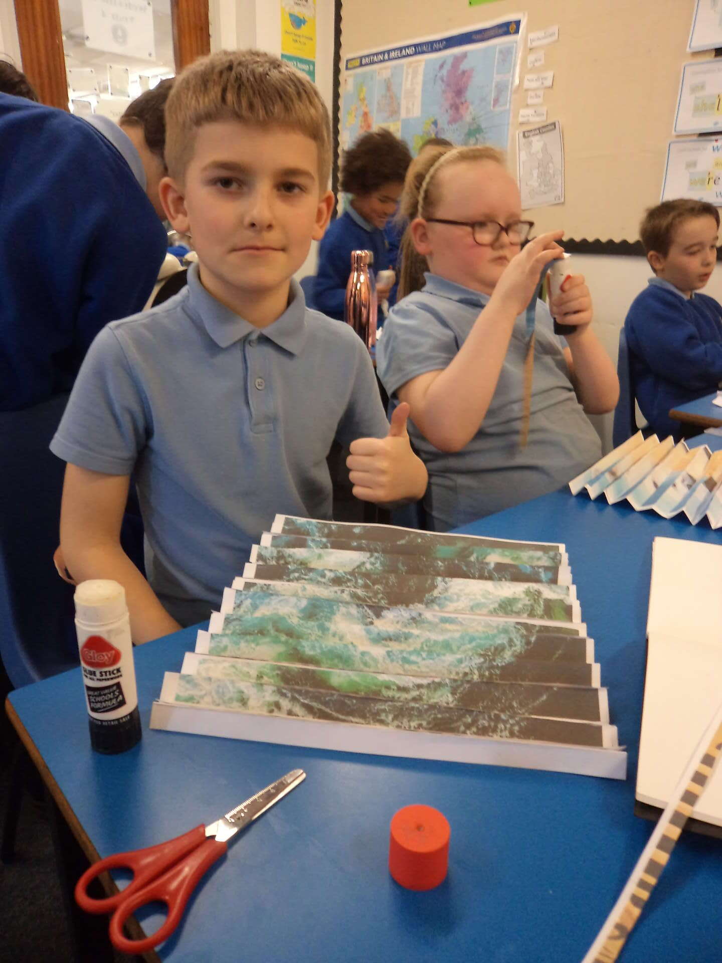 Year 4 have focused on art design this week. We looked at creating optical illusions and used our scoring skills to help with the folding. After that, we studied Willow pattern and Thomas Minton's designs. We recreated our own versions using our novel, Kensuke's Kingdom, as inspiration. Finally, we looked at the work of artist, Paul Cezanne. We made secondary colours and used short brush strokes, in different directions, to create our mug design.