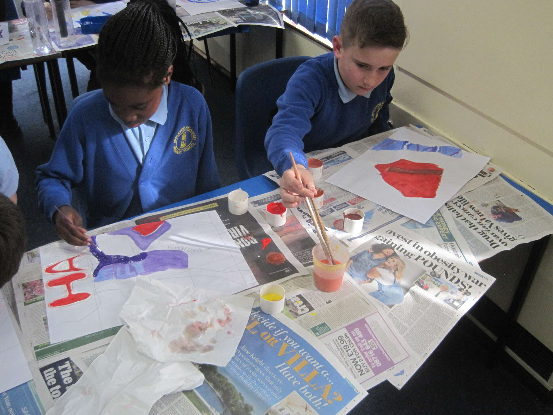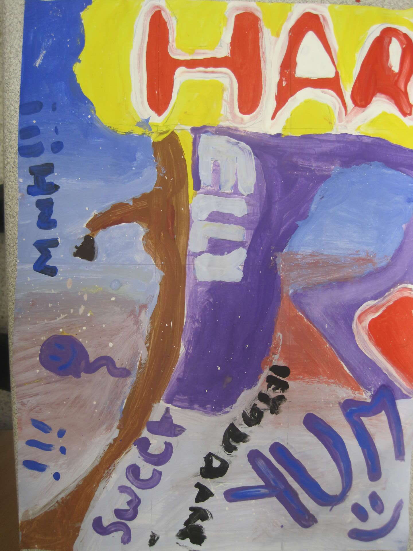 This week we have been completing our Art and Design art unit. We used sweet wrappers to create a collage and then used a view finder to trace a section. We then used this to up scale our drawing on to A3 paper. We then painted our up-scaled drawings.