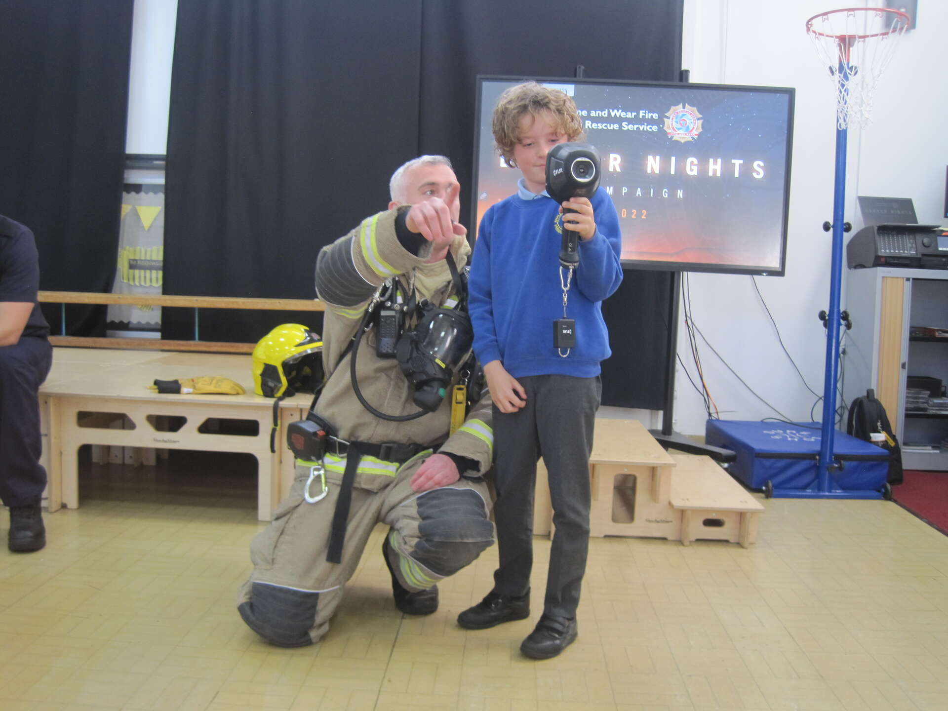 The Fire Service visited school this week. They discussed their role, what types of jobs they do and also how to report a fire/emergency. They showed us their kit and discussed how each part works/ helps to keep them safe. They also talked to us about different ways to stay safe especially surrounding firework and bonfires.